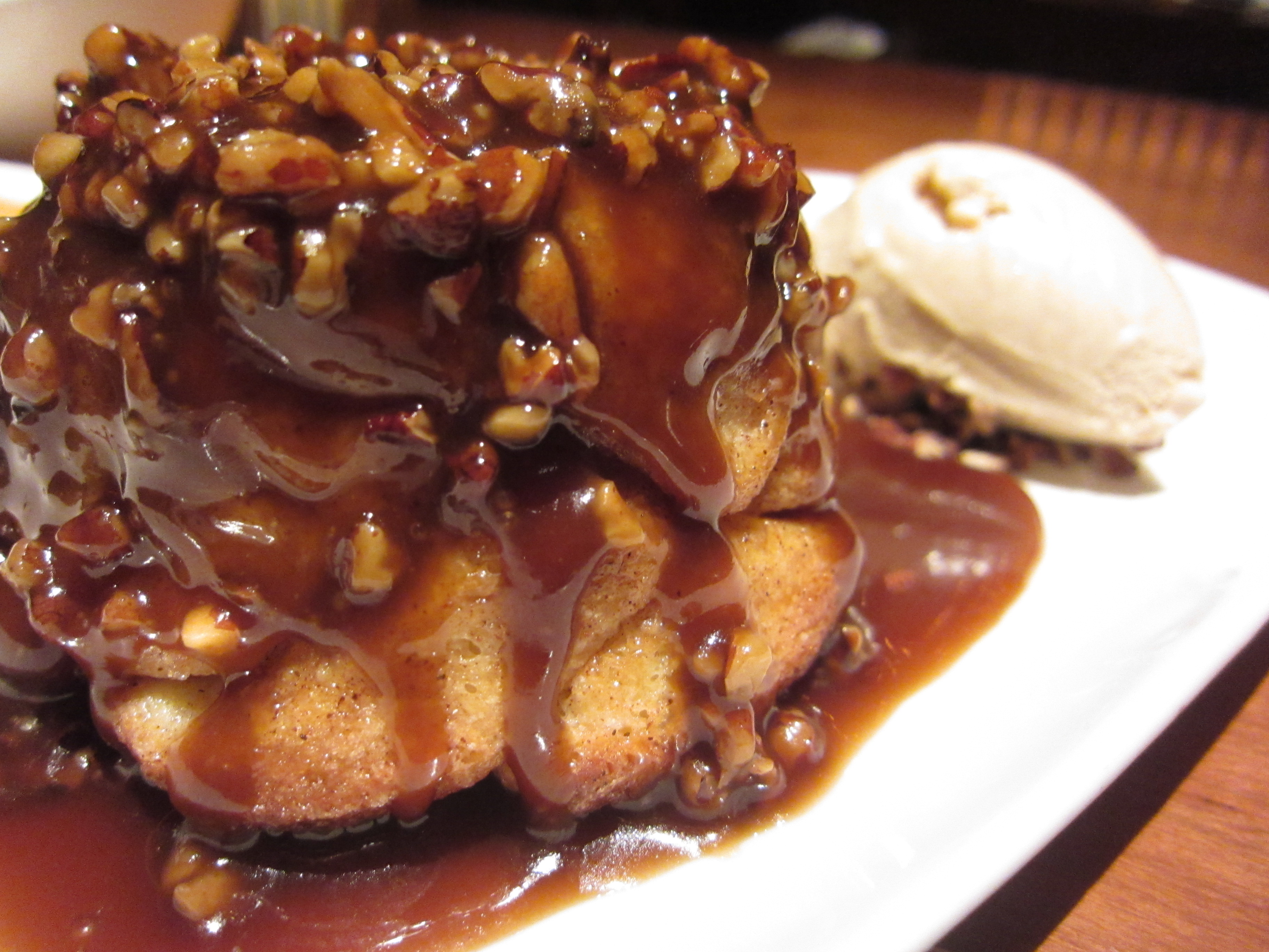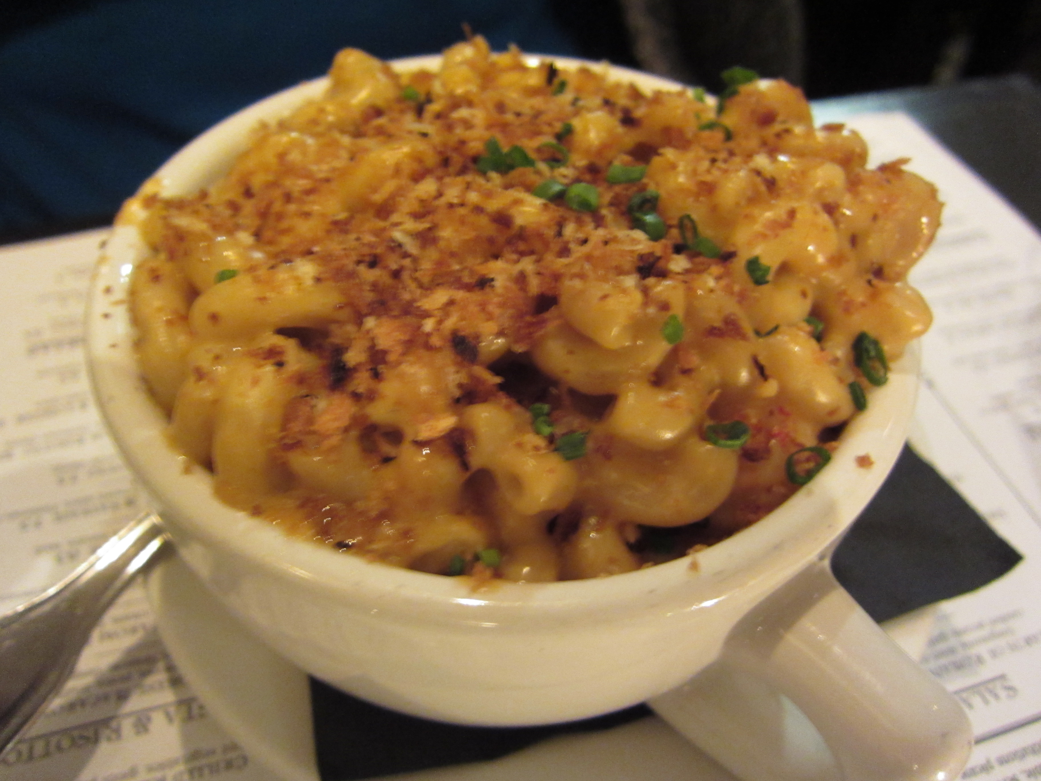 The lobster macaroni and cheese was a surprise. It didn’t have all that much lobster in it — not a lobster chunk in sight. The noodles were elbow, pretty standard. The cheese sauce was a cognac cream sauce — tasty. Even though this was a standard mac and cheese, I loved it. The fact that it was pretty much like the Kraft Blue Box mac and cheese helped a lot. As a kid, I lived off of that stuff. The noodles in this were actually al dente — the cognac cream was a nice touch and the parmasean crust gave it the crunch factor. Though the lobster was scant, the little that it had was nice.