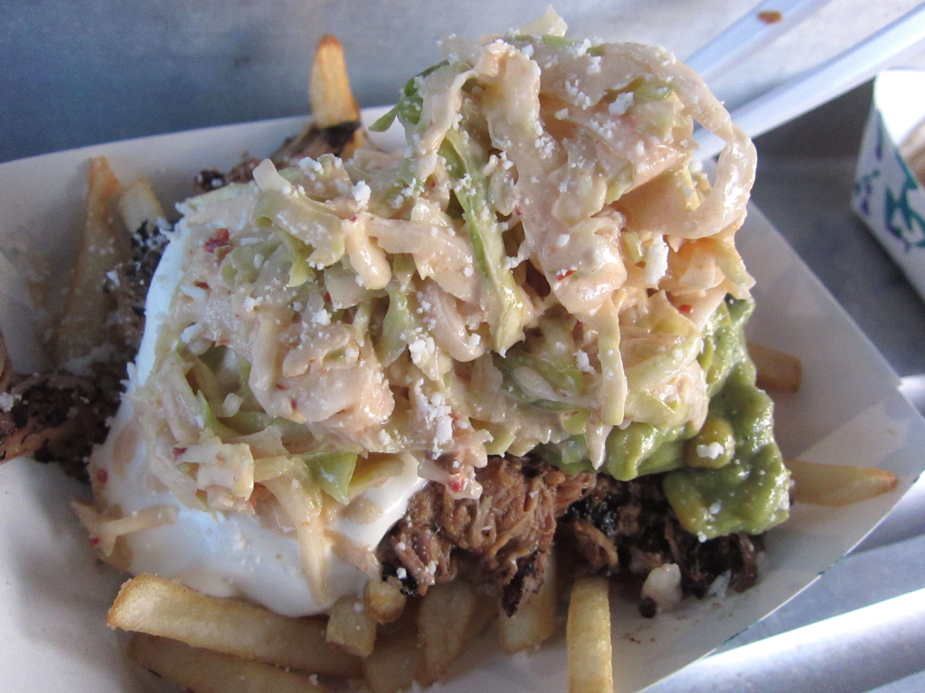 The Lime Truck, the famous green gourmet food truck blew up. The semi celebrity status meant more eyes on them, more judging eyes at that. Honestly, if it weren’t for Food Network’s “The Great Food Truck Race,” would I even consider their food? Maybe, maybe not. The reality is, The Lime Truck pumps out pretty awesome food. The incident of the adobo taco might have been on the off chance they were having a bad day. Either way, 2 out of the 3 items I ordered were a home run, and I guess that is what matters. Look at me, showing favoritism to the celebrity food truck — I must be selling out. The reality is, the good items were really good, the bad items were just plain crappy. I guess you just have to order the right things. Plain and simple — carnitas fries / short rib sliders.