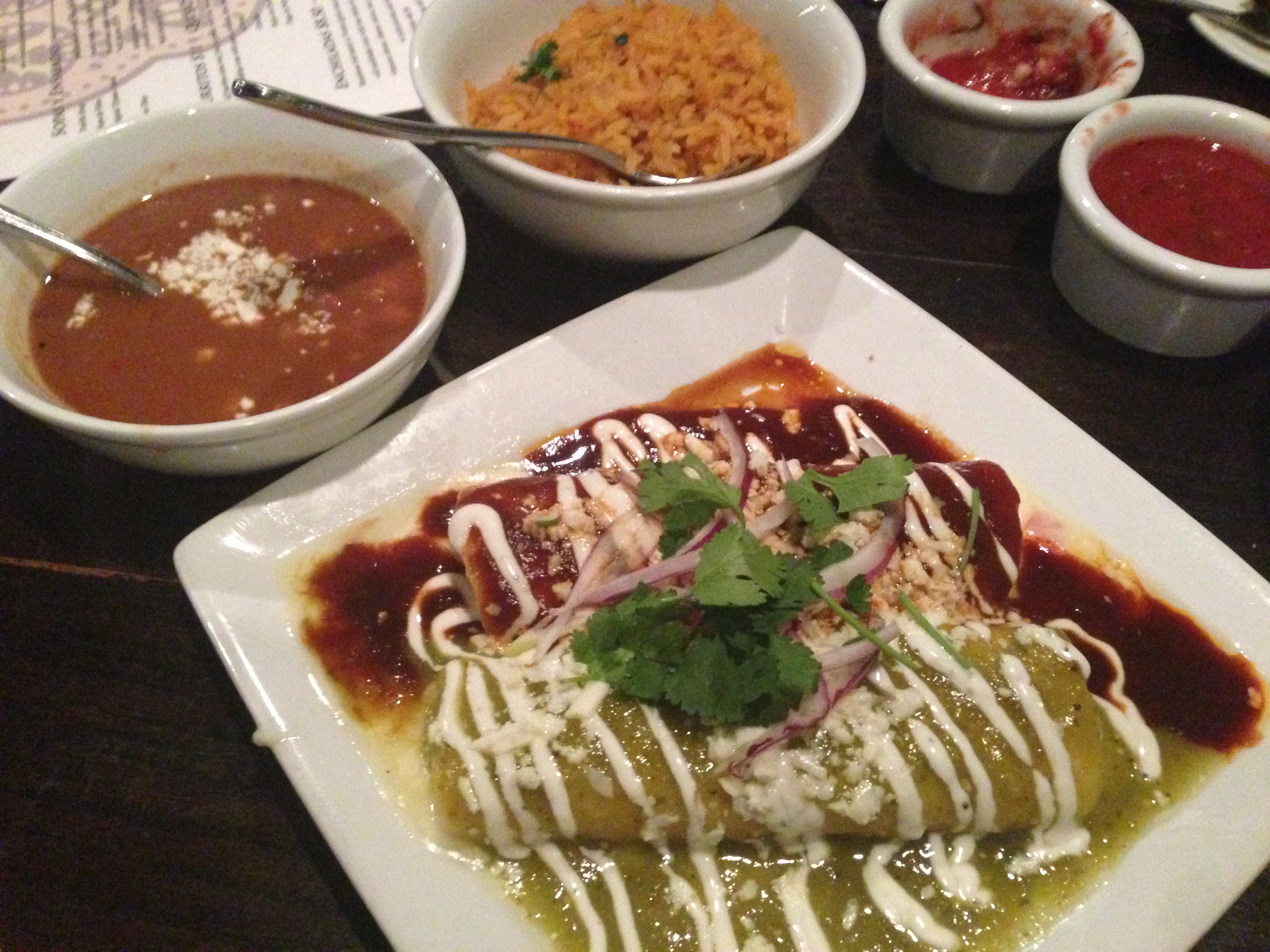 A lot of times, I like to order at least one thing I either don’t usually order, or I usually don’t make at home. I ordered the lamb skewers. Though it wasn’t as satisfying as the penne, it was still a delicious entree. The grilled lamb on rosemary skewers was brilliant — each bite was soft, perfectly medium rare in the middle, and infused with rosemary — The bell peppers also gave some flavor as well. The Greek yogurt and honey sauce was great with the meat, as was the roasted whole fig on the side. My favorite item on this dish was the couscous. Combined with onion, tomato, and scallions, the couscous was fluffy and aromatic. It went well with the delicious lamb.