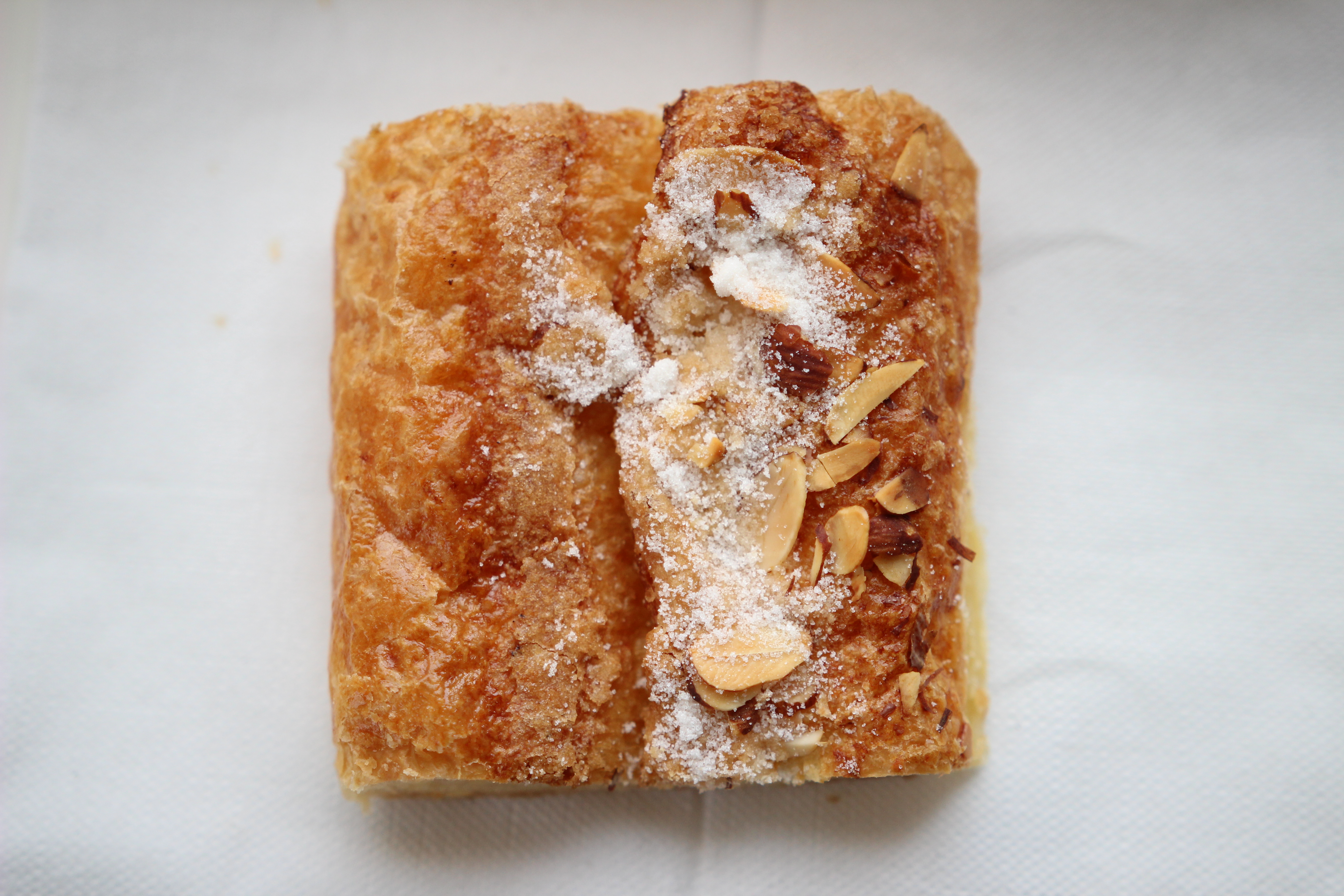 We just got the almond croissant. It was sweet, flakey, and had a sweet filling inside. The almonds on the outside were toasted perfectly and the crunch from this thing was unbelievable. Im sure I had powdered sugar all over and bits of almonds stuck to my face. This was perfect to hold me over until late lunch.